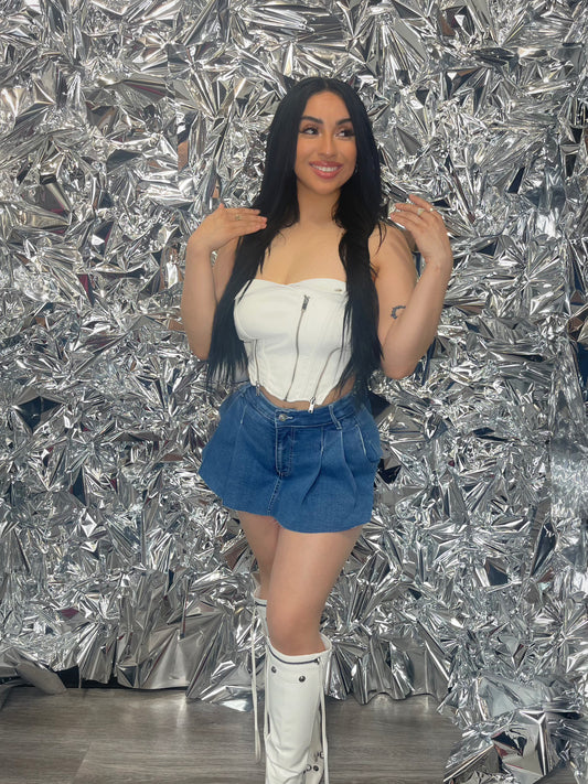 Faux leather cropped vest tube top Stretchy Zipper closure on the front 100% Polyurethane Color:...