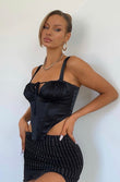 - Satin corset top with boning an ruched tie bust detail, zipper closure in the back