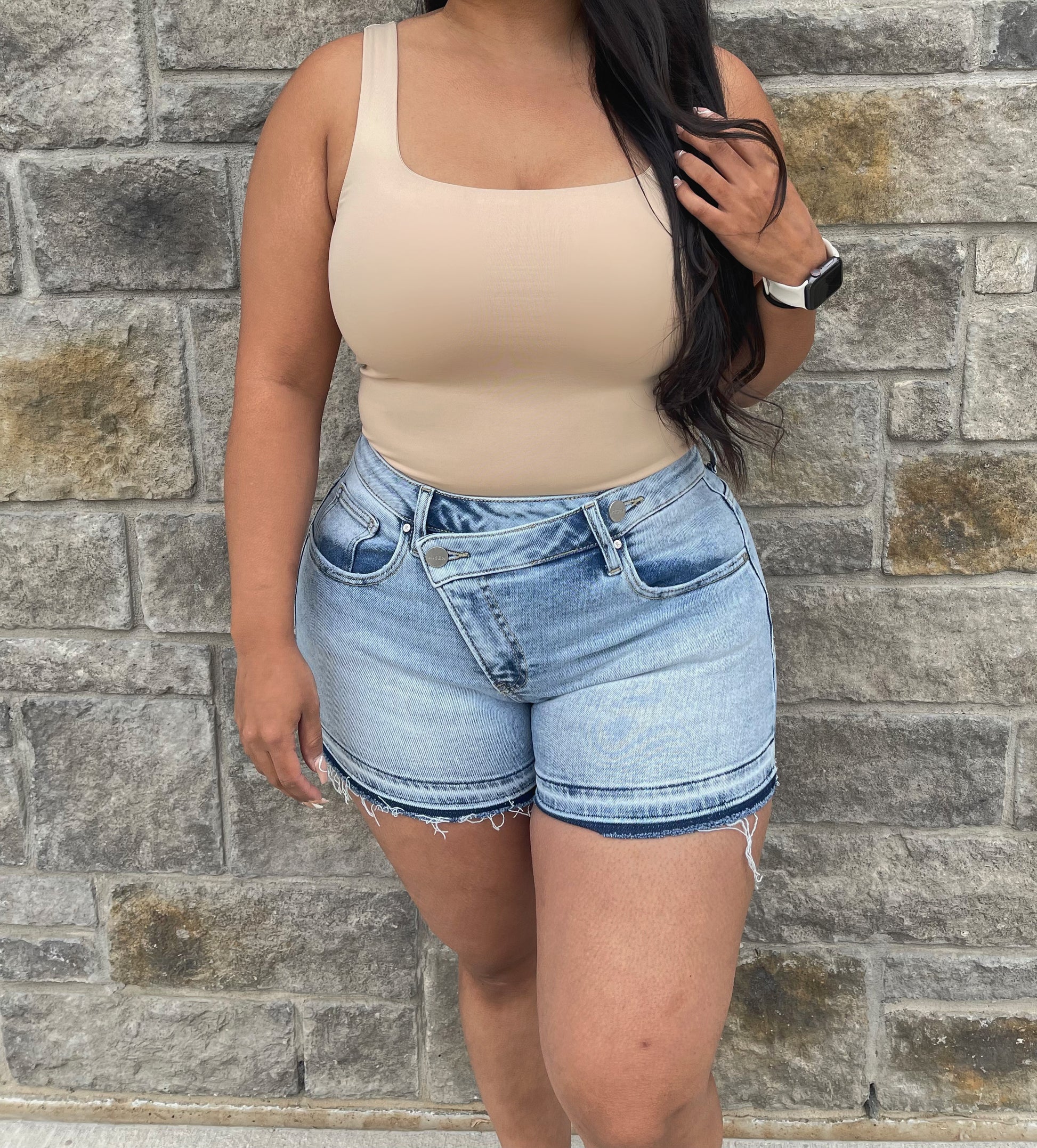 - This bodysuit features a supportive, curve-hugging double layered finishing and two square necklines