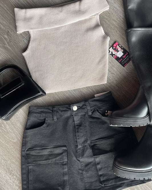 Off shoulder knit crop top