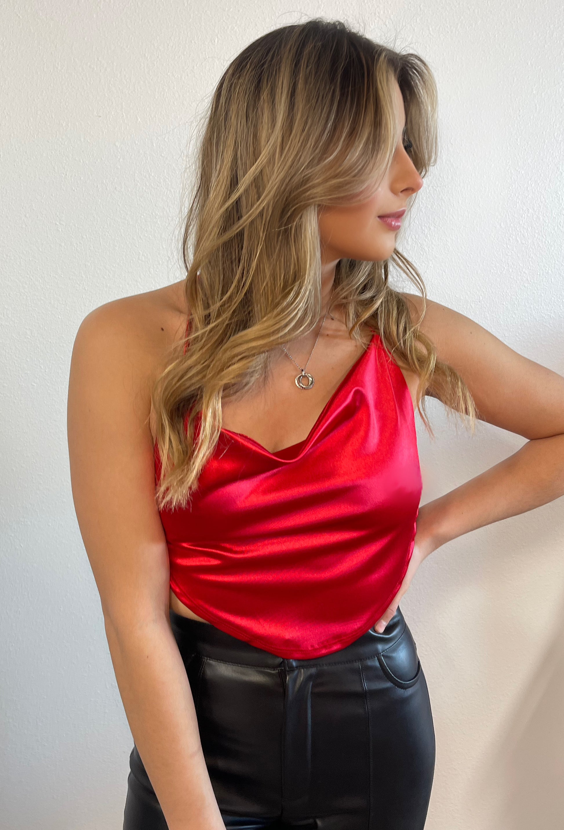 - Sleeveless, cowl neck with open back and criss cross straps.
