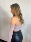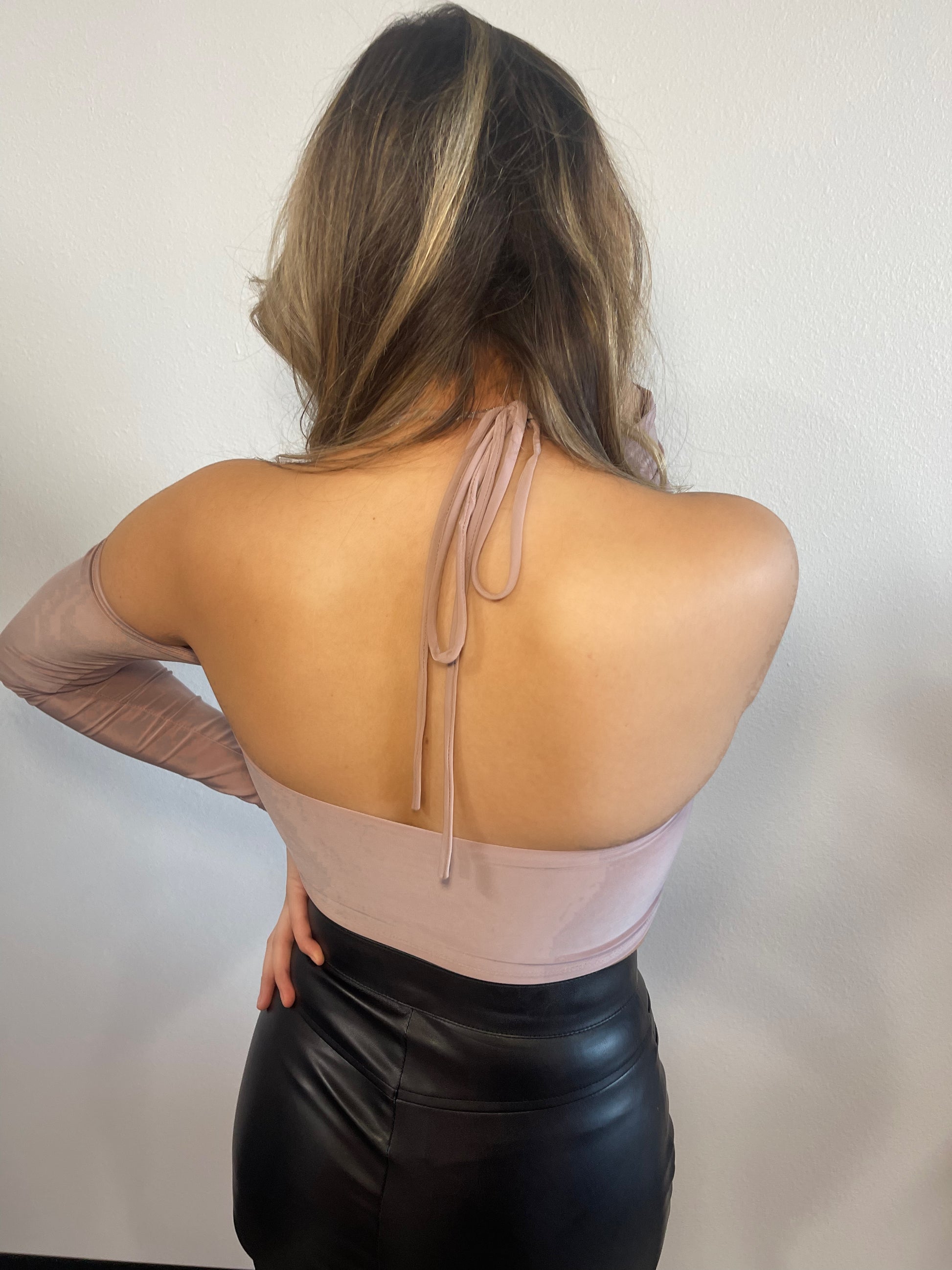 - Cold shoulder long sleeve halter crop top